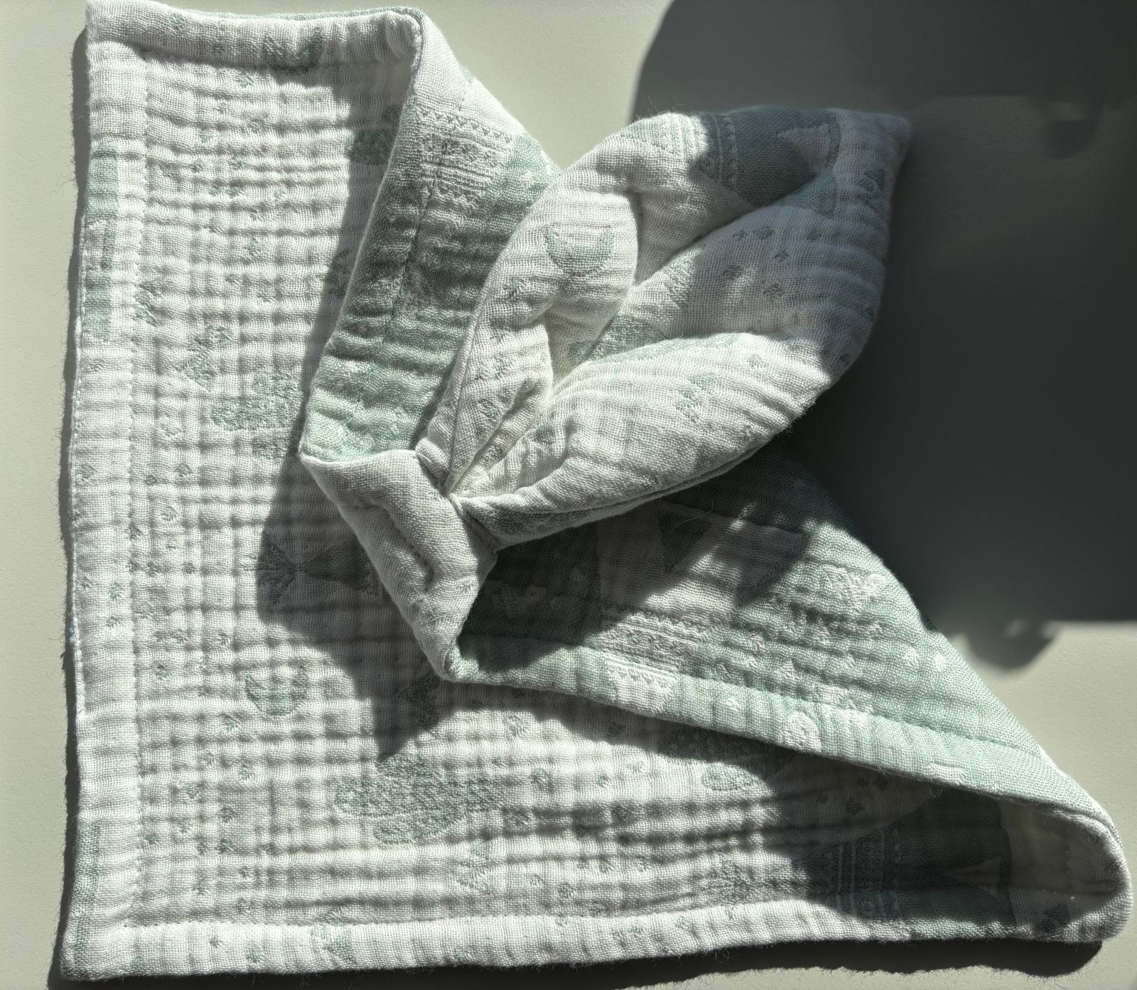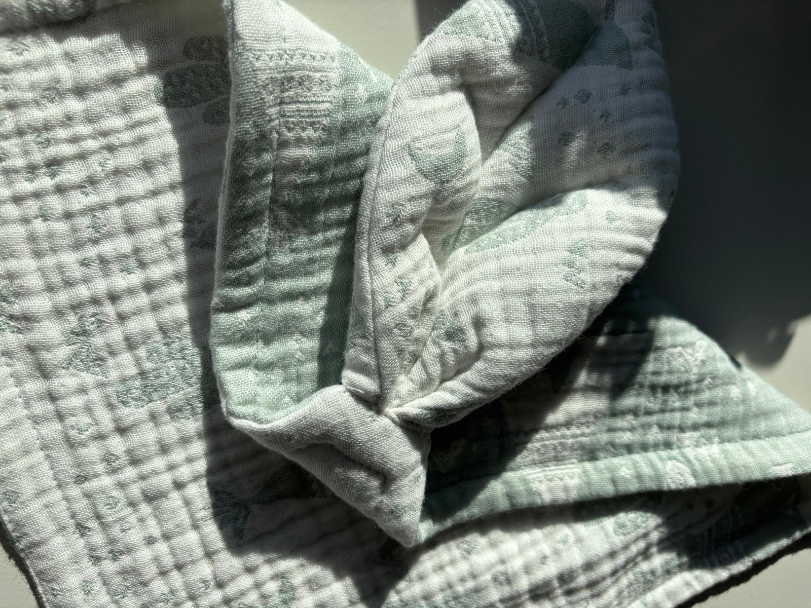 Tillverkad av 8-lagers muslin i ett lager. Med mÄtten 28x28 cm passar filten perfekt i vagnen, spjÀlsÀngen eller som en mysig snuttefilt under vilostunden. (Generellt sett Àr storlekarna större.)
