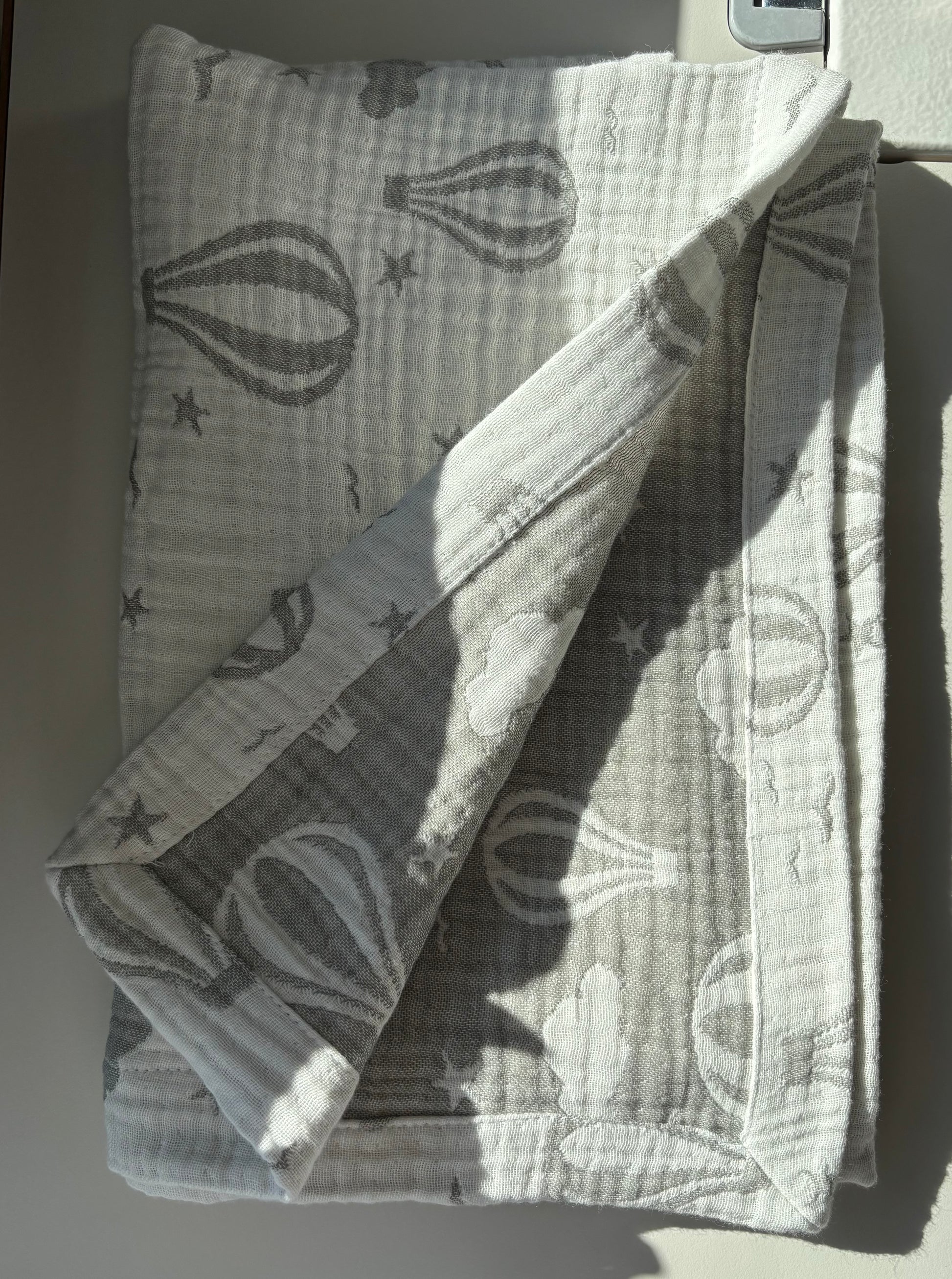 Vit luftballong babyfilt (65 x 75 cm,4-lagers jacquardmuslin)