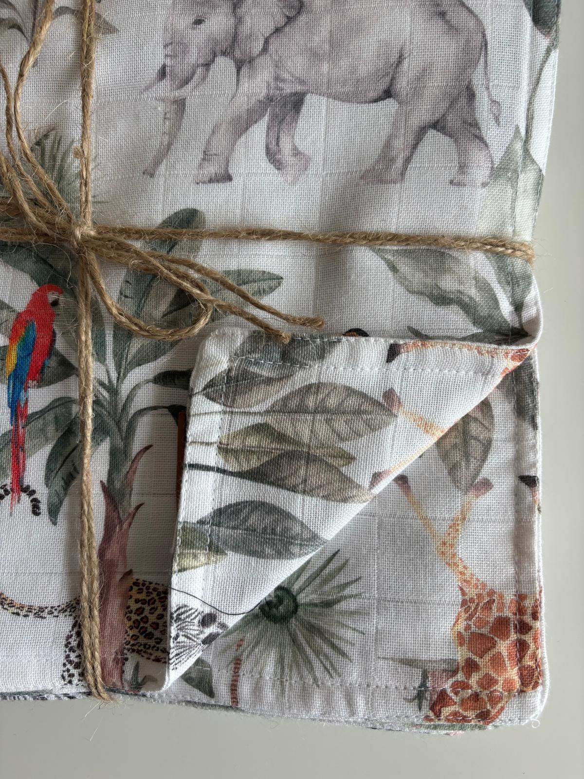Tillverkad av 2-lagers muslin i tvo lager. Med måtten 100 x 100 cm passar filten perfekt i vagnen, spjälsängen eller som en mysig snuttefilt under vilostunden. (Generellt sett är storlekarna större.)